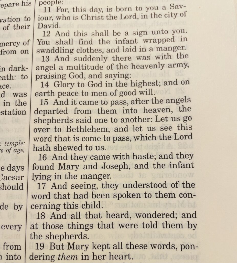 When the shepherds arrive in search of Jesus, it made me wonder too on the purpose of the angel’s message.  Was it simply to proclaim Christ’s birth, or was it too a message needed for Mary herself, one someone other than angels needed to bring and give to her in a time of doubt to encourage and bless her to continue in living God’s calling for her life?